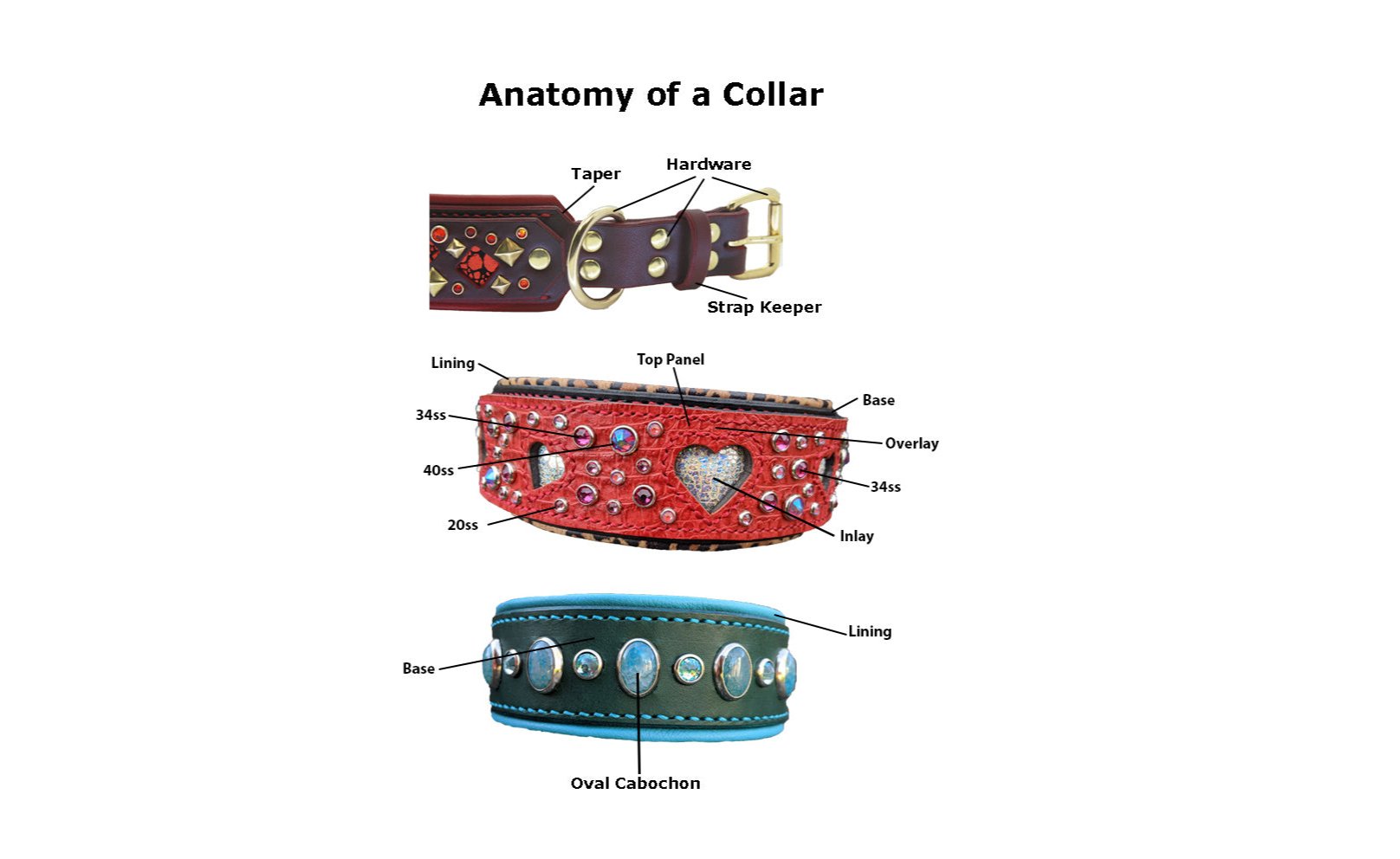 A visual guide to understanding the different pieces and parts when selection options for your custom collar