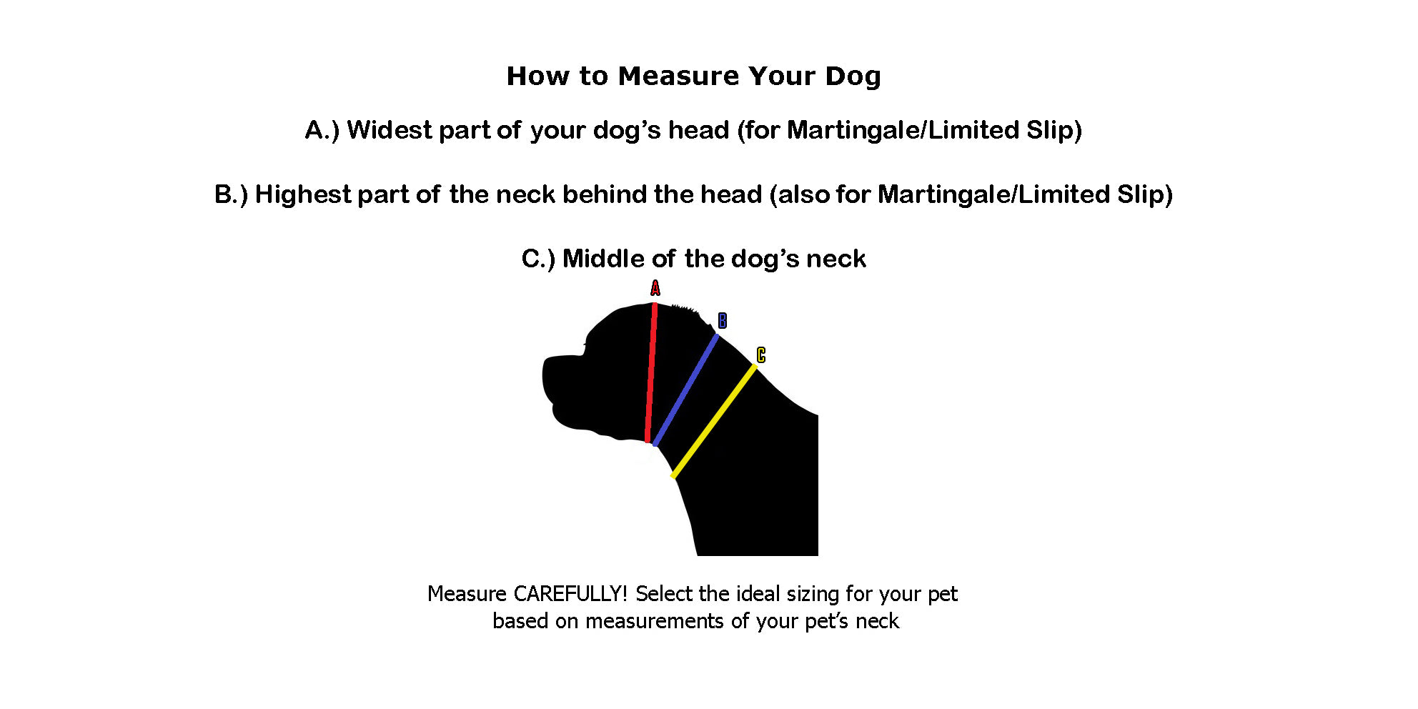 Sizing varies for closure type - martingales and limited slip collars require your dog's head measurement as these closure types do not open and are not adjustable, they must be able to slip over your dogs head. Selecting too large a size will allow the collar to slip over your dogs head even when the strap is pulled, and could allow your dog to escape it's collar. It is very important to properly measure your dog.