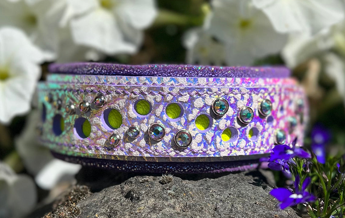 The collar is gorgeous and well crafted. I loved all the customization options. Thank you!